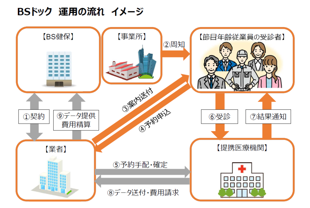 なお、BSドックは事業所の定期健康診断ではなく、ブリヂストン健康保険組合が保健事業サービスとして展開するものです。